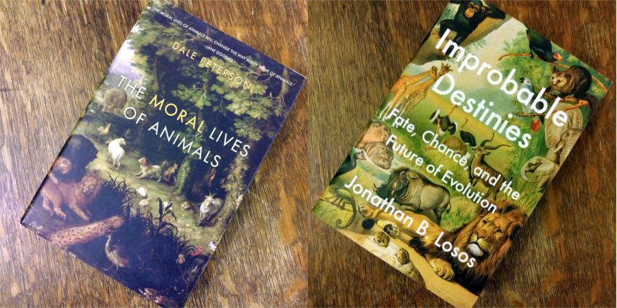 I couldn’t help but notice the striking similarity in jacket covers between Improbable Destinies and Dale Peterson’s The Moral Lives of Animals.