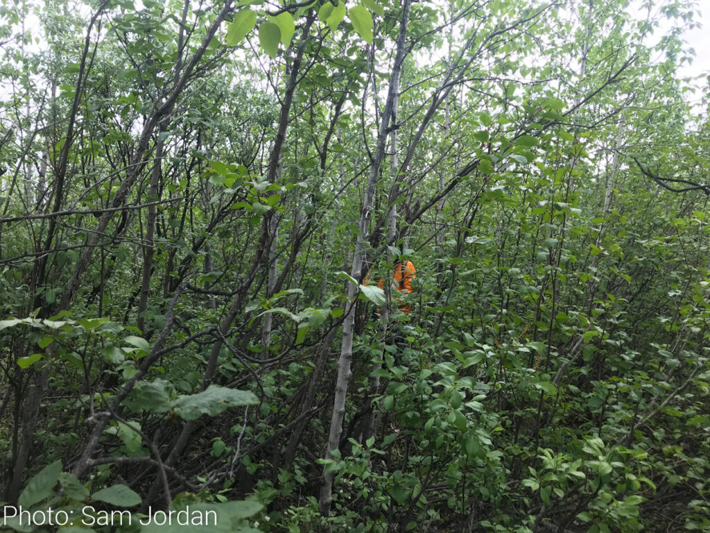 But as the points accumulated on the map, we noticed some glaring holes in our coverage. Most importantly, we had no samples from Northwestern Alaska. Populations in this region are the most distant from the ancestral origin of all wood frogs in the southern Great Lakes. If we wanted a truly “range-wide” representation of wood frog samples, we needed tissue from that blank spot on the map!