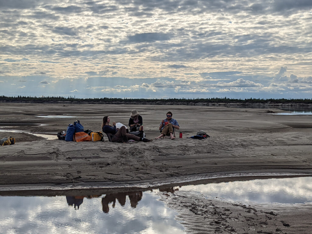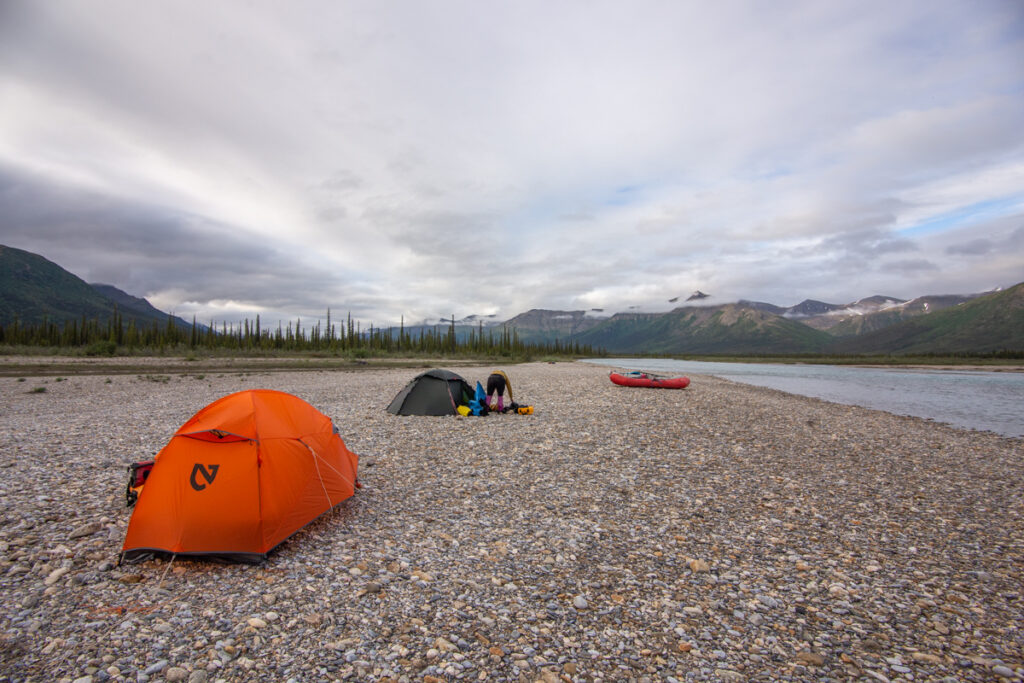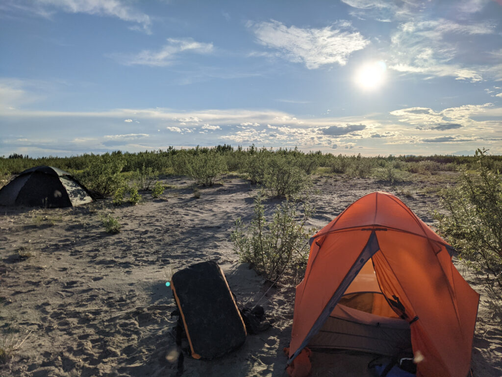 We fell into an effective rhythm on the trip.  Each morning we woke, made breakfast, broke camp, packed the boats, and launched early in the day. While one person on each boat rowed, the other person checked the maps for frog surveying spots, fished, or photographed. We stopped along the way to bushwhack back into wetlands we’d identified from satellite images. We typically arrived at camp late. Yara and I would set up one tent to process the specimens from the day while Same and Kay made camp and cooked dinner. One of the hidden disadvantages of 24-hour Arctic sunlight is that it is easy to overwork. Most nights we only managed to get sampled finished, dinner cleaned up, and camp bearproofed with enough time to crawl into tents with just eight hours till beginning again the next day.