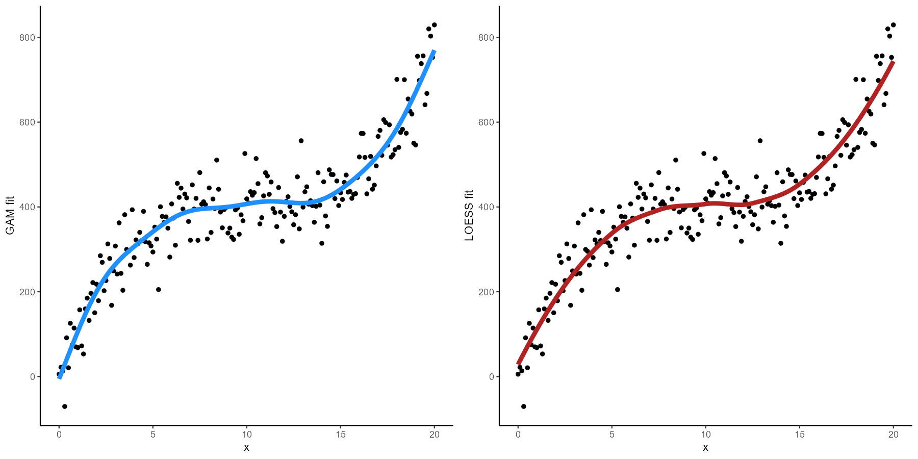 In real world scenarios we would not know the functional form when viewing the data and might decide to fit an additive model or a locally smoothed regression.
